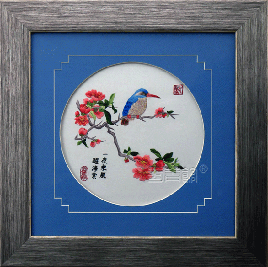 同一图案的蜀绣《海棠图》针脚平齐、色彩光亮,充分体现出蜀绣的工艺特点。
