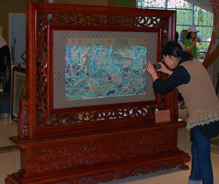 四川历史上多为避乱之地。唐明皇李 隆基避安史之乱幸蜀。成都迄今仍有天回镇等遗存。该史实亦被多种艺术形式所表现。诗有“长恨歌”。剧有“长生殿”。而画则以此“明皇幸蜀图”为代表。画面中云遮雾绕如蓬莱般的仙山。崎岖蜿蜒的栈道。壹队骑旅或行进或歇息。画中山石树木以细线勾勒。并以青绿赭石填染。不加皴斫。赋彩染色浓重。构图严密精巧。笔法工整细腻。色彩绚丽缤纷。画中重点为右下部。小桥前壹朱衣黑马者正待过桥。宋代文豪苏东坡从马的特征分析出骑者正是唐明皇。“嘉陵山川。帝乘赤骠起三骏。与诸王及嫔御十数骑。出飞仙岭下。初见平陆。马皆若惊。而帝马见小桥作徘徊不进状”。该画三座山峰成对称构图。与唐代山水壁画类似。嫔妃胡服帏帽可从出土唐三彩找到类似范例。唐代气息浓郁。反映出当时文化大融合的景象。画中大量运用产于西域中亚的石青。石绿等矿物颜料。赋彩染色浓重。此画以山水为主。人物成为点缀。对后世山水画成为独立体系有着重要作用。
