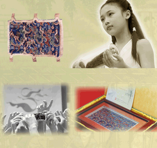 国家一级文物五星出东方利中国锦一九九五年出土于新疆尼雅古精绝国国王墓中,该锦除织有纹虎、避邪等图案外,尚清晰可见五星出东方利中国八个汉字,令人称奇。专家鉴定该锦为汉代蜀锦。我们通过五重高密度经纬设计、片色和斜纹组织应用等工艺后,终于织出不失原锦神韵的蜀锦珍品,引起海内外媒体强烈关注。 人民日报、新华社、中央电视台等媒体均有报道。该锦还成为深圳申办2011年世界大学生运动会专题片中的重要道具和申办活动的礼品。